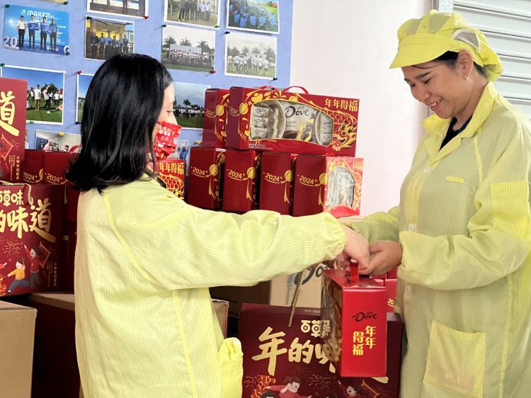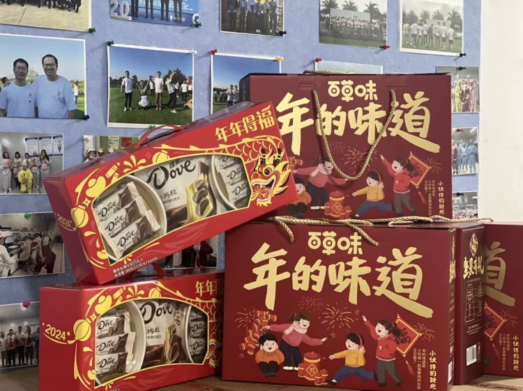 公司特意置办了「红红火火」的年货礼品